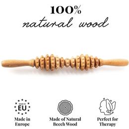 Rola de Masaj Ovala din Lemn Maderotherapy, Natur - Tuuli, 1 buc: rola de masaj din lemn de fag, lungime 40 cm, este ideala pentru reducerea celulitei, imbunatatirea circulatiei si relaxarea musculara. Fabricata manual in Europa, din lemn natural netratat chimic si fara formaldehida, este sigura pentru uz extern si intern. Utilizata in maderoterapie, stimuleaza drenajul limfatic, sparge celulele adipoase si tonifica pielea, oferind un aspect ferm si neted. Potrivita pentru automasaj pe talie, solduri, coapse, fese, spate sau brate. Rezistenta, confortabila si usor de folosit, este un instrument esential pentru ingrijirea corporala naturala.