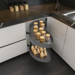 Magic Corner-ul extractibil este un instrument care combina materiale de inalta calitate si un design functional pentru organizarea eficienta a spatiului din dulap. Dotat cu doua niveluri echipate cu folie antiderapanta, asigura stabilitate si acces facil la obiectele depozitate, prevenind alunecarea acestora. Conceput pentru a valorifica fiecare colt al dulapului, acest accesoriu robust si elegant optimizeaza ordinea si usurinta in utilizare, oferind solutia ideala pentru orice spatiu de depozitare.
