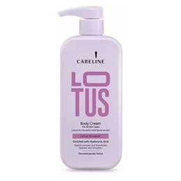 Lotiune de Corp pentru Toate Tipurile de Piele - Careline Lotus Bouquet Body Cream, 500 ml: descoperiti rasfatul pielii cu lotiunea de corp Careline Lotus Bouquet, cu o textura bogata ce hidrateaza intens si hraneste in profunzime. Pielea ramane fina, catifelata si placuta la atingere. Formula este imbogatita cu Acid Hialuronic, Complex de Vitamine, Unt de Shea, Aloe Vera, Ulei de Jojoba, Musetel, Alantoina si Bisabolol, un mix de ingrediente cu rol hranitor si protector, ce contribuie la mentinerea unui aspect sanatos si luminos al pielii.