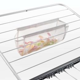 Este prevazut cu 2 suporturi pentru sosete din plastic si 2 suporturi dedicate pentru incaltaminte, ideale pentru adidasi, pantofi sport sau balerini. De asemenea, acesta ofera si un suport special pentru clemele de rufe care te ajuta sa le ai mereu la indemana, evitand dezordinea.