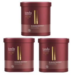 Pachet 3 x Masca Tratament cu Ulei de Argan - Londa Professional Velvet Oil Treatment 750 ml masca-tratament, ce are la baza o formula imbogatita cu ulei nobil de argan si vitamine, care ingrijeste delicat si confera instant energie parului. Hraneste si imbunatateste excelent moliciunea firului, hidrateaza si reda imediat parului vitalitatea si un luciu natural si sanatos, lasandu-l vizibil reinsufletit si cu un aspect tineresc.