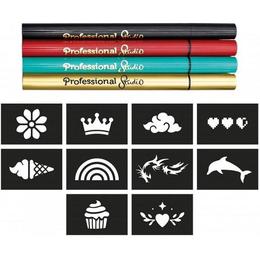 Pixuri si sabloane pentru tatuaje. Gold: Pixuri cosmetice pentru desenarea de tatuaje super colorate. Foloseste pixul cosmetic pentru a desena liber sau pentru a colora sabloanele.