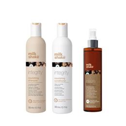 Pachet Tratament Complet pentru Par Uscat si Deteriorat - Milk Shake Integrity: Sampon, 300 ml + Balsam, 300 ml + Spray Tratament, 250 ml: