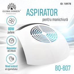 Dupa finalizarea manichiurii, aparatul poate fi oprit prin apasarea butonului corespunzator, urmand sa fie deconectat de la sursa de alimentare pentru a asigura siguranta. Fabricat dintr-un plastic rezistent, corpul aspiratorului garanteaza durabilitate si fiabilitate pe termen lung.