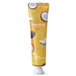 Crema de Maini Hidratanta cu Nuca de Cocos - Frudia My Orchard Coconut Hand Cream, 30 g: hidrateaza intens si protejeaza pielea uscata, oferind o senzatie imediata de catifelare. Formula sa contine extract de nuca de cocos si ingrediente nutritive precum unt de shea si panthenol, care refac bariera naturala a pielii si previn uscarea. Textura usoara se absoarbe rapid, fara a lasa urme grase, iar parfumul delicat de nuca de cocos confera mainilor prospetime si un miros placut care persista intreaga zi.