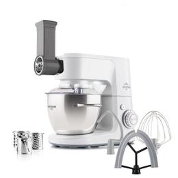 Robotul de bucatarie multifunctional ETA Gratussino III Smart, cu roti dintate metalice metalice si accesorii bogate, bate, amesteca si framanta aluatul. Se descurca excelent si cu razuirea de exemplu a legumelor sau a branzei datorita razatorii cu tambur.