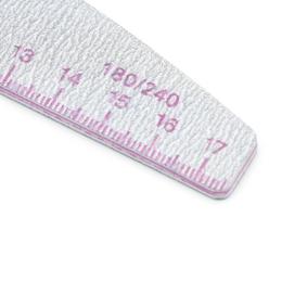 Pilă de unghii cu riglă, 180/240, într-o nuanță delicată de roz, este ideală pentru finisarea unghiilor naturale sau artificiale.