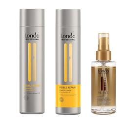 Pachet Reparator - Londa Professional Visible Repair: Sampon 250 ml, Balsam 250 ml + Ulei de Argan 100 ml: