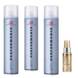 Pachet 3 x Fixativ cu Fixare Medie - Wella Professionals Performance Strong Hold Hairspray, 500 ml + Ulei Reconstructiv 30 ml: