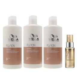 Pachet 3 x Sampon Reparator - Wella Professionals Fusion Intense Repair Shampoo, 500 ml + Ulei Reconstructiv 30 ml: