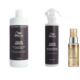Pachet Tratament pentru Par Vopsit - Wella Professionals Color Service: Tratament dupa Vopsire sau Decolorare 1000 ml, Tratament Inainte de Vopsire 185 ml + Ulei Reconstructiv, 30 ml: