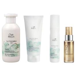 Pachet pentru Par Cret si Ondulat - Wella Professionals Nutricurls: Sampon 250 ml, Balsam 200 ml, Spray 150 ml + Ulei Reconstructiv 30 ml: