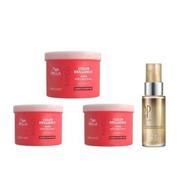 Pachet 3 x Masca pentru Par Vopsit cu Fir Gros - Wella Professionals Invigo Color Brilliance Coarse, 500 ml + Ulei Reconstructiv 30 ml: