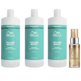 Pachet 3 x Sampon pentru Par Lipsit de Volum - Wella Professionals Invigo Volume Boost, 1000 ml + Ulei Reconstructiv, 30 ml: