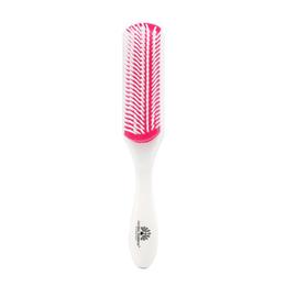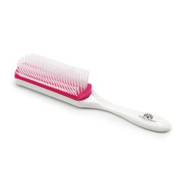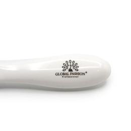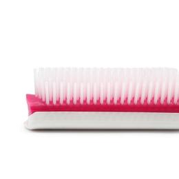 O perie de calitate superioară, cu un design modern în nuanțe de alb și roz, ideală pentru îndepărtarea prafului sau a reziduurilor de pe unghii după pilire.
