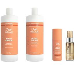 Pachet Intens Nutritiv pentru Par Uscat si Deteriorat - Wella Professionals Invigo Nutri-Enrich: Sampon 1000 ml, Balsam 1000 ml, Balsam Leave-In 150 ml + Ulei Reconstructiv 30 ml: