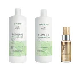 Pachet Vegan pentru Toate Tipurile de Par - Wella Professionals Elements Renewing: Sampon 1000 ml, Balsam 1000 ml + Ulei Reconstructiv 30 ml: