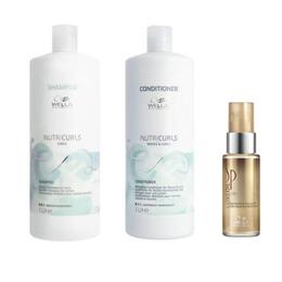 Pachet pentru Par Cret si Ondulat - Wella Professionals Nutricurls: Sampon 1000 ml, Balsam 1000 ml + Ulei Reconstructiv 30 ml: