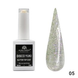 Un avantaj major al acestui top este puterea lui de a “salva” o manichiură: dacă nuanța aplicată nu a ieșit uniform, dacă a apărut o mică imperfecțiune sau dacă pur și simplu culoarea pare prea simplă — Disco Yuki o transformă complet. Cu o singură aplicare, unghiile capătă un efect glamour, plin de viață, care distrage atenția de la orice mică greșeală și o înlocuiește cu o doză de magie strălucitoare.