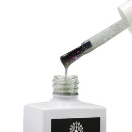Ce îl face cu adevărat special este compoziția sa îmbogățită cu particule fine de glitter și fulgi Yuki — acei fulgi irizați care captează lumina în cele mai neașteptate unghiuri și creează reflexii multicolore, ca o auroră boreală pe unghii. În lumină naturală, topul emană sclipiri delicate, iar sub lumina LED sau flash, efectul devine spectaculos: nuanțe de roz, violet, albastru, auriu sau verde se joacă în reflexii hipnotice.