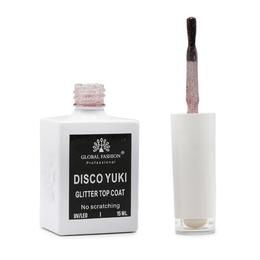 Un avantaj major al acestui top este puterea lui de a “salva” o manichiură: dacă nuanța aplicată nu a ieșit uniform, dacă a apărut o mică imperfecțiune sau dacă pur și simplu culoarea pare prea simplă — Disco Yuki o transformă complet. Cu o singură aplicare, unghiile capătă un efect glamour, plin de viață, care distrage atenția de la orice mică greșeală și o înlocuiește cu o doză de magie strălucitoare.