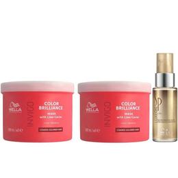 Pachet 2 x Masca pentru Par Vopsit cu Fir Gros - Wella Professionals Invigo Color Brilliance Coarse, 500 ml + Ulei Reconstructiv, 30 ml: