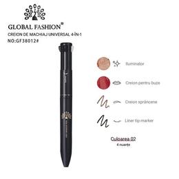 Creionul de machiaj 4 în 1 Global Fashion GF38012 #02 este un produs multifuncțional ce combină lip liner, creion pentru sprâncene, eyeliner și highlighter într-un format compact. Oferă o aplicare precisă, textură cremoasă și pigment intens, ideal pentru un machiaj complet și natural, potrivit pentru orice moment al zilei.