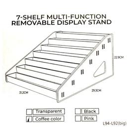 Stand de expunere multifuncțional cu 7 rafturi, mobil, maro