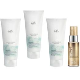 Pachet 3 x Balsam pentru Par Cret si Ondulat - Wella Professionals Nutricurls Waves & Curls Detangling Conditioner, 200 ml + Ulei Reconstructiv, 30 ml: