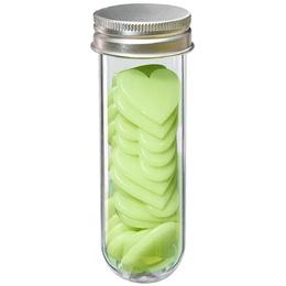 Setul contine inimi verzi, delicate, ambalate intr-un tub transparent cu capac metalic, gata sa lumineze serile cu farmecul lor discret.