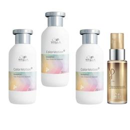Pachet 3 x Sampon pentru Par Vopsit de Mentinere a Culorii si Fortifiere - Wella Professionals Color Motion+, 250 ml + Ulei Reconstructiv, 30 ml: