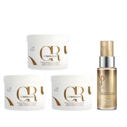 Pachet 3 x Masca pentru Par Neted si Stralucitor - Wella Professionals Oil Reflections, 500 ml + Ulei Reconstructiv 30 ml: