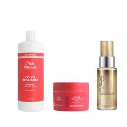 Pachet pentru Par Vopsit cu Fir Subtire/Normal - Wella Professionals Invigo Color Brilliance Fine/Normal: Sampon 1000 ml, Masca 150 ml + Ulei Reconstructiv 30 ml: