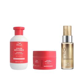 Pachet pentru Par Vopsit cu Fir Subtire/Normal - Wella Professionals Invigo Color Brilliance Fine/Normal: Sampon 300 ml, Masca 150 ml + Ulei Reconstructiv 30 ml: