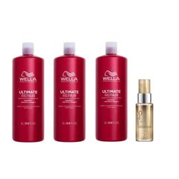 Pachet 3 x Sampon Reparator cu AHA & Omega 9 pentru Par Deteriorat Pasul 1 - Wella Professionals Ultimate Repair Shampoo, 1000 ml + Ulei Reconstructiv 30 ml: