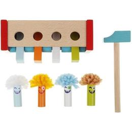 Jucarie din lemn: Clovnii jucausi: Jocul ajuta copilul sa invete sa loveasca cu ciocanelul fiecare piesa din cele 4. Fiecare lovitura reusita este sarbatorita cu un claun care sare, spre marea satisfactie a copilului tau. Distractia este garantata cu aceasta jucarie!