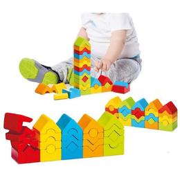 Jucarie din lemn: Turnulete pentru indemanare: Setul de constructii Turnulete pentru indemanare stimuleaza creativitatea si imaginatia celor mici, ajutandu-i sa descopere culorile si formele intr-un mod interactiv. Jocul contribuie la dezvoltarea coordonarii mana-ochi, a gandirii logice si a atentiei, incurajand copilul sa potriveasca piesele conform modelelor ilustrate pe ambalaj. In plus, manipularea pieselor din lemn ii imbunatateste dexteritatea si simtul echilibrului.