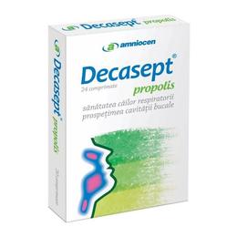 SHORT LIFE - Decasept cu Aroma de Propolis Amniocen, 24 comprimate: sustine sanatatea cailor respiratorii si prospetimea cavitatii bucale. Produsul are actiune regeneranta si imunostimulatoare nu doar asupra zonei afectate, ci si asupra intregului organism. Este recomandat pentru tratamentul infectiilor bucofaringiene si al inflamatiilor de la nivelul cavitatii bucale, datorita uleiurilor esentiale din compozitia sa. Vitaminele B1 si B6 contribuie la buna functionare a sistemului nervos si la mentinerea sanatatii psihice, vitamina B6 contribuie la reducerea oboselii si extenuarii.