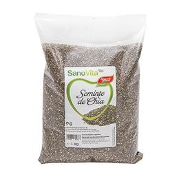 SHORT LIFE - Seminte de Chia - Sano Vita, 1000 g: semintele de chia sunt o sursa bogata de fibre, proteine, acizi grasi esentiali Omega 3 si 6, antioxidanti, minerale, vitamine si aminoacizi, oferind organismului numeroase beneficii. Inhiba pofta de mancare, fiind utile in curele de slabire si de mentinere a greutatii corporale, energizeaza organismul, previn imbatranirea prematura si sunt indicate pentru alimentatia diabeticilor, avand un indice glicemic scazut. Continutul ridicat de calciu sustine sanatatea oaselor, a muschilor si a sistemului nervos, fosforul sprijina sistemul imunitar, seleniul si ceilalti antioxidanti din compozitie (quercitina, acidul cafeic si clorogenic, kaempferolul) combat actiunea nociva a radicalilor liberi, fierul are rol in formarea hemoglobinei iar magneziul este esential pentru dezvoltarea musculaturii si functionarea optima a sistemului nervos.