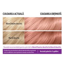 Vopsea de Par Semipermanenta - Loncolor Trendy Colors, nuanta B53 Blond Rose/ Desert Rose, 2 x 25 ml: vopseaua semipermanenta cu o formula originala fara amoniac, revitalizeaza culoarea parului natural sau vopsit, oferindu-i o stralucire intensa, reflexii vibrante si un aspect sanatos datorita uleiului de Limnanthes Alba. Aplicarea este simpla si rapida, direct din plic, fara a necesita amestecuri suplimentare. Potrivita pentru nuantele de par de la blond foarte deschis la blond deschis, aceasta vopsea confera o colorarea uniforma, care rezista pana la 5 spalari. Ideala pentru revigorarea culorii intre doua vopsiri permanente sau pentru nuantarea delicata a suvitelor, fara a deteriora parul. Vopseaua nu este destinata acoperirii firelor albe sau grizonate, si nu deschide culoarea naturala a parului.