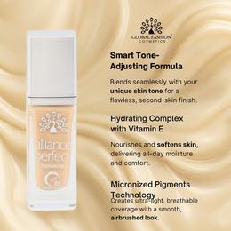 Redescoperă frumusețea naturală a pielii tale cu Alliance Perfect Foundation de la Global Fashion, nuanța L023 – Golden Tan, creată pentru tenurile bronzate cu subton cald-auriu.