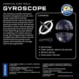 Experimentati cu giroscopul pentru a afla mai multe despre fizica miscarii, a fortelor si a gravitatiei. Aflati despre fortele giroscopice, vedeti si simtiti-le in actiune. Exerseaza trucuri clasice de fizica mentinand echilibrul giroscopului pe o masa, pe un suport si pe o sfoara. Rotiti giroscopul in interiorul sferei de plastic transparent inclus si vedeti si simtiti fortele care actioneaza asupra sferei, care functioneaza ca o cutie de depozitare pentru giroscopul dvs.