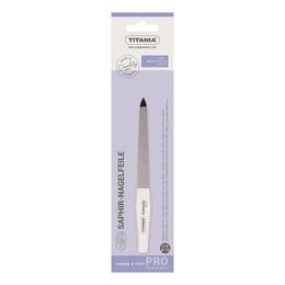Pila de unghii elastică, cromată Titania, din oțel safir, calitate Solingen, cu împingător de cuticulă integrat în mânerul din plastic, este acoperită cu praf fin de microsafir. Cele două mărimi de granulație, grosier și fin, garantează un tratament blând cu unghia. Sfâșierea unghiilor sunt prevenite, rămân sănătoase și pline de vitalitate.