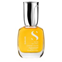 Ser de Stralucire cu Microcristale - Alfaparf Milano Semi Di Lino Sublime Cristalli Liquidi The Original, 15 ml: ser imbogatit cu microcristale ideal pentru toate tipurile de par, ce confera instant stralucire si luminozitate uimitoare fara sa incarce. Datorita formulei cu ulei din seminte de in si vitamina E, invaluie fibra capilara intr-un film de protectie usor si flexibil, prevenind deshidratarea si efectele nedorite ale umiditatii.