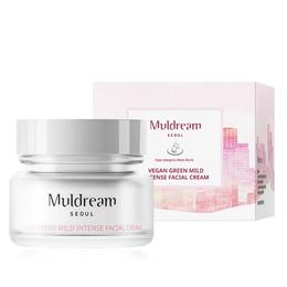 Crema de Fata Vegana, Intens Hidratanta - Muldream Vegan Green Mild Intense Facial Cream, 60 ml: crema de fata vegana ofera hidratare profunda si si intareste bariera naturala a pielii, protejand-o impotriva factorilor externi. Formula sa bogata in ceramide si panthenol restabileste echilibrul hidric si mentine pielea supla si sanatoasa. Imbogatita cu madecassoside si extract de portulaca, crema calmeaza iritatiile si confera confort imediat chiar si pielii sensibile. Textura sa catifelata si racoritoare se absoarbe rapid, lasand pielea moale, neteda si vizibil revitalizata. Ideala pentru toate tipurile de ten, inclusiv pentru cel uscat sau sensibil.