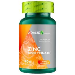 Bisglicinat de Zinc - Adams Supplements Healthy Immune System, 90 capsule: supliment alimentar usor de organism, bine tolerata la nivel gastric, care ajuta la sustinerea imunitatii, sanatatii pielii si echilibrului hormonal, esential in numeroase procese celulare. Protejeaza celulele impotriva stresului oxidativ si participa la sinteza normala a proteinelor si la diviziunea celulara. Este recomandat pentru intarirea imunitatii, probleme dermatologice sau caderea parului, sustinerea nivelului de testosteron la barbatii activi, detoxifierea celulara si sustinerea vederii.