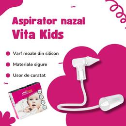 Aspirator nazal manual Vita Kids, bebelusi si copii, pentru indepartarea secretiilor nazale, aspiratie controlata, varf moale si delicat, sigur, fara BPA si ftalat