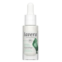 Crema de Ochi Unisex cu Prebiotice, Anti-cearcane si Calmare, Fara Parfum - Lavera Barrier Balance Eye Cream, 15 ml: crema de ochi vegana, special formulata pentru pielea sensibila din zona ochilor, calmeaza, hidrateaza si reduce vizibil cearcanele si semnele de oboseala. Formula cu prebiotice sustine microbiomul pielii, intareste bariera naturala si contribuie la cresterea rezistentei pielii la factorii externi. Extractul organic de ceai verde si ingredientele naturale hidratante lumineaza zona ochilor si imbunatatesc textura pielii, lasand-o neteda, confortabila si revitalizata. Textura usoara se absoarbe rapid, fara sa lase film gras, fiind ideala pentru rutina zilnica. Formula fara parfum si alcool este potrivita pentru pielea sensibila, reactiva sau uscata. Recomandata pentru femei si barbati.