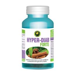 SHORT LIFE - Hyper-Diab Forte Hypericum, 60 capsule: supliment alimentar pe baza de extracte din plante cu proprietati hipoglicemiante, hipotensive, depurative, antiseptice, antimicotice, diuretice, vitaminizante si mineralizante, indicat ca adjuvant in reglarea metabolismului glucidic si lipidic. Contribuie la reducerea glicemiei, a colesterolului si a grasimilor din sange, ameliorand afectiunile cardiovasculare. Intareste imunitatea si stimuleaza eliminarea apei si a acidului uric in exces din organism.