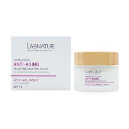 Crema de Fata Anti-Imbatranire cu Acid Hialuronic SPF 15 - LabNatur Rejuvenating Anti-Aging Face Cream, 50 ml: ofera hidratare intensa, reduce liniile fine si ridurile si protejeaza pielea impotriva agresiunilor externe. Combina acidul hialuronic cu filtre solare SPF15, pentru a oferi luminozitate, netezime si elasticitate. Acidul hialuronic patrunde in straturile profunde ale pielii, retine apa si ofera volum si suplete. Untul de shea este emolient si regenerator natural, catifeleaza si hraneste pielea. Contine bisabolol si extract de ghimbir, care calmeaza, revitalizeaza si are efect antioxidant. Glicerina vegetala si uleiurile hidrogenate intaresc bariera cutanata si previn deshidratarea.